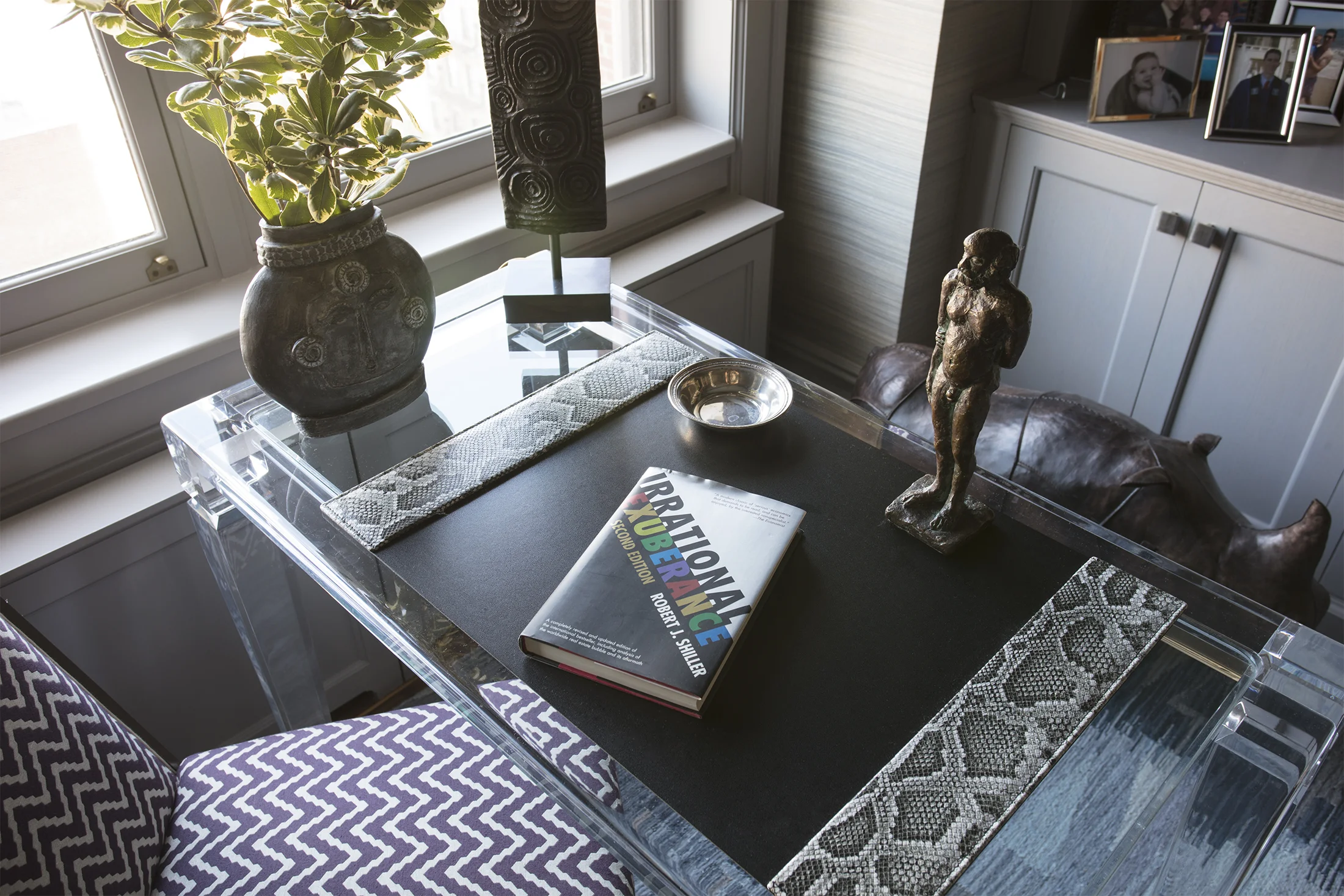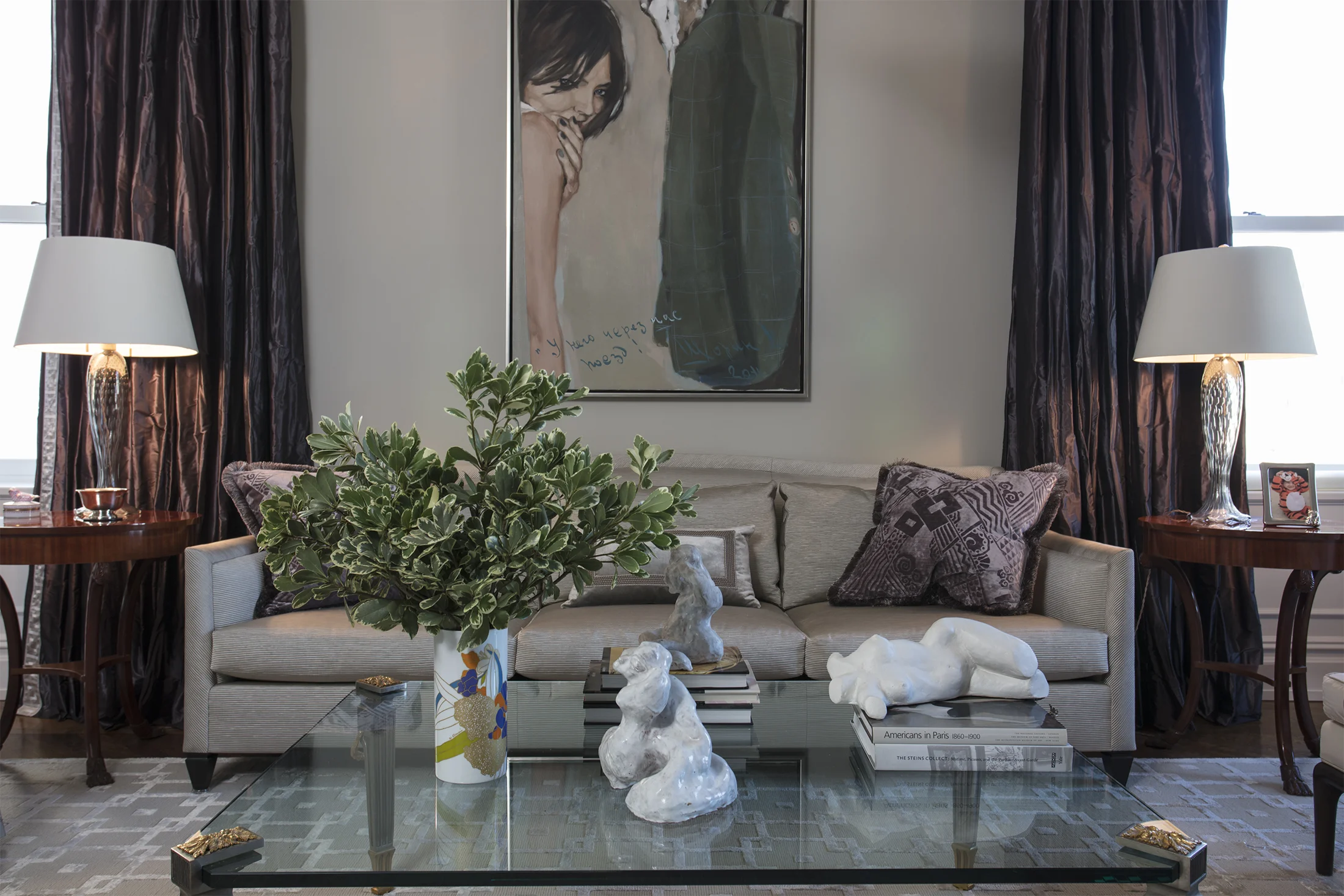 Classic style with clean lines and fresh colors define the interiors of this Park Avenue home. After moving into Manhattan, the couple wanted a home that felt bright and inviting for their growing family. From the warm greys in the library to the taupe and aubergine fabrics in the living room - the interiors reflects their contemporary lifestyle while nodding to tradition.